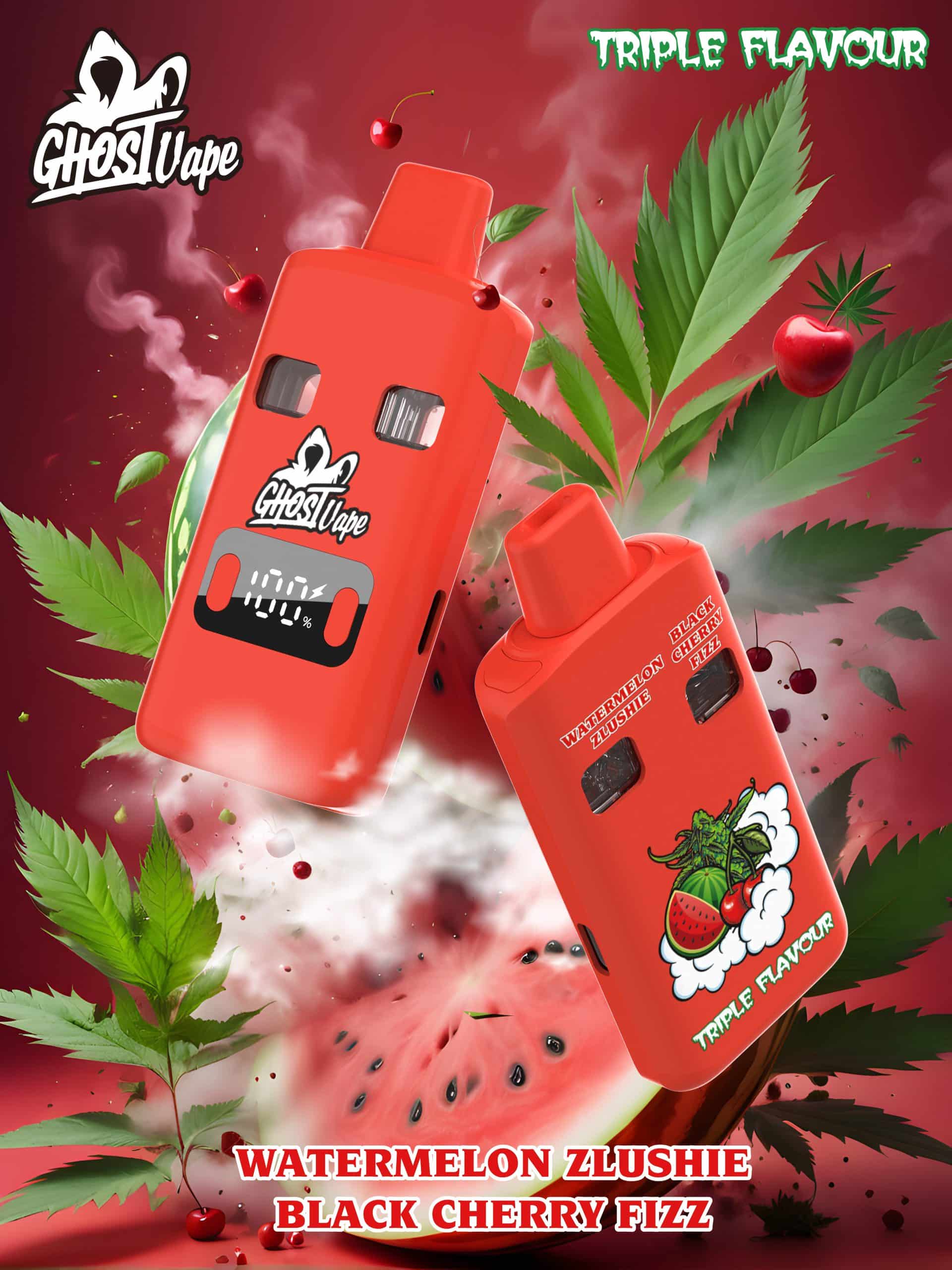 GHOST Vape – Watermelon Zlushie / Black Cherry Fizz – 2000mg (1g/ 1g ) THC VAPE